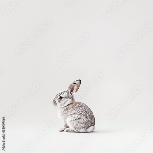 © zuhri, Fototapeta premium Realistic Rabbit Portrait: A Gentle Profile on a Light Background