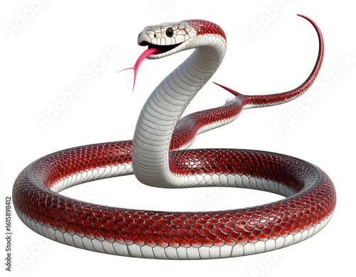 Fototapeta premium Realistic Red and White Snake with Forked Tongue Displaying Aggression