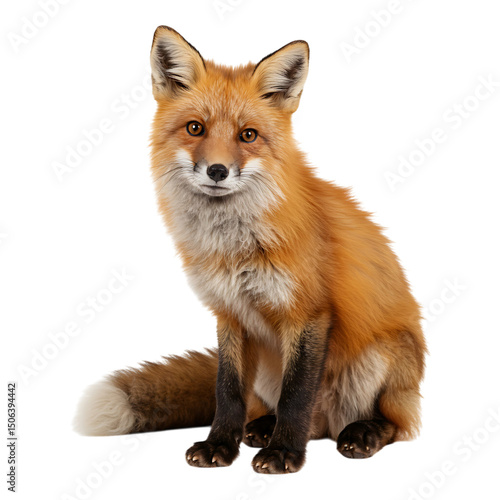 © sache, Fototapeta premium Realistic red fox sitting on white background, perfect for wildlife themes, nature education, or animal posters