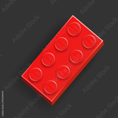 © boxerx, Fototapeta premium Realistic red Lego plastik constructor part 4x2 isolated on dark grey background. Vector illustration