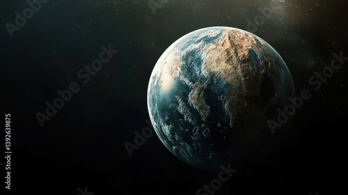 Obraz premium Realistic render of Earth in the cosmos, showcasing detailed surface textures...