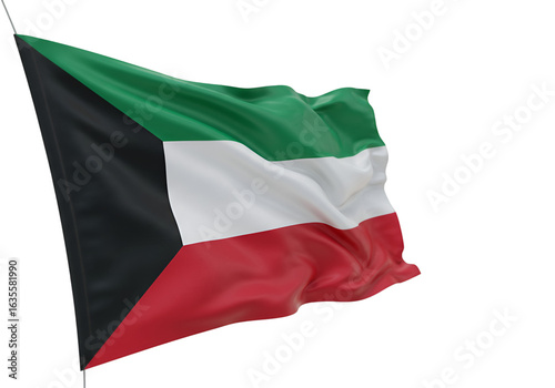 © LaiHan, Obraz premium Realistic Render of Kuwaiti Flag Waving on Isolated Transparent Background