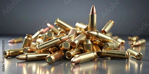 Naklejka premium Realistic rendered 5 Grenel bullets falling on floor into a pile, ammunition, bullets, gun, firearms