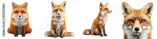 Fototapeta premium Realistic Rendering of a Fox in Full Orange Color Displaying Various Poses