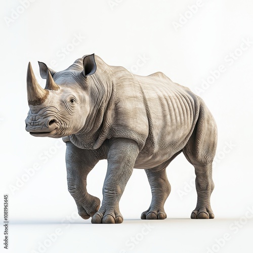 Fototapeta premium Realistic Rhino in Natural Pose on White Background