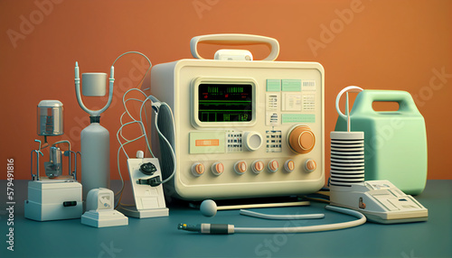 Obraz premium Realistic set of medical equipment and tools, Generative AI