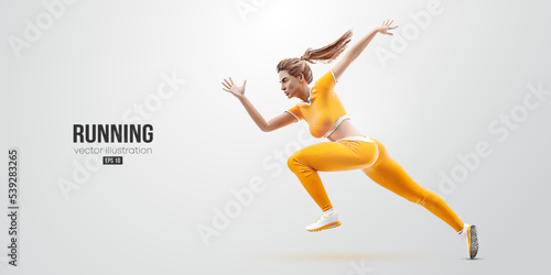 © Yevheniia, Naklejka premium Realistic silhouette of a running athlete on white background. Runner woman are running sprint or marathon. Vector illustration
