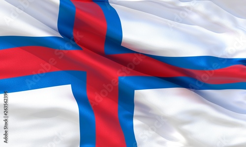 © Pic3d, Fototapeta premium Realistic silk material Faroe Islands waving flag, high quality detailed fabric texture. 3d illustration