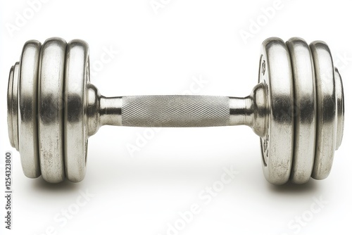 © YUANCEN, Fototapeta premium Realistic silver dumbbell on a white background, detailed vector illustration.