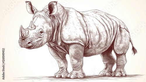 Fototapeta premium Realistic Sketch of a Rhinoceros in Earthy Tones Representing Wildlife...
