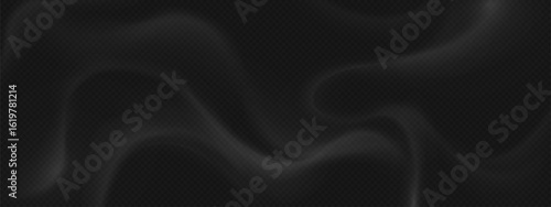 Fototapeta premium Realistic smoke overlay effect - flowing grey vapor waves on transparent background. Soft fog texture with smooth curves for photo editing, atmospheric visual design elements. Natural mist pattern.