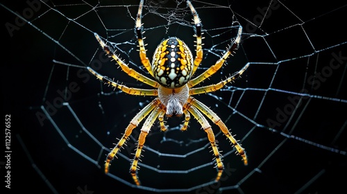 © El Media, Obraz premium realistic Spider's web black background.