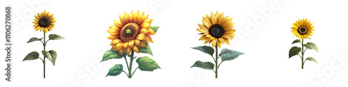 Obraz premium Realistic Sunflower Illustrations with Lush Green Leaves on transparent...