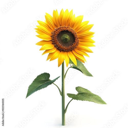 © 송희 한, Obraz premium Realistic Sunflower on White Background