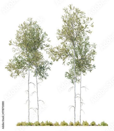 © ANDRIBENKY, Obraz premium Realistic tall tree cutouts with transparent background, ideal for clean integration into architectural renderings and visual design projects