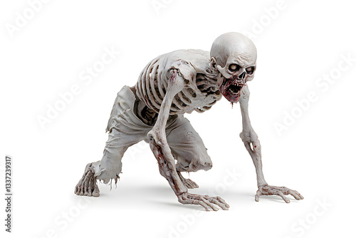 © Oksana_Latysheva, Fototapeta premium Realistic Terrifying Zombie Crawling Isolated On White Background. Halloween Horror