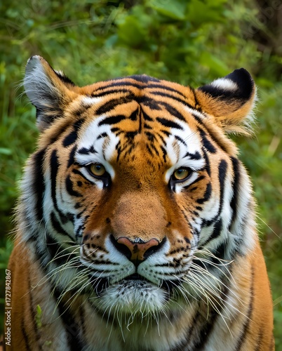 © Ralfphic, Fototapeta premium Realistic tiger portrait in natural habitat lighting