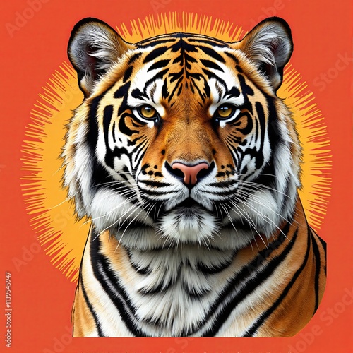 © Dmitry, Fototapeta premium Realistic Tiger Portrait with Sunset Glow Background, Print for T-Shirt