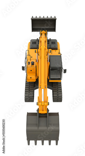 © Kuntil, Fototapeta premium Realistic Top View Illustration of a Yellow Excavator with Tracks and Bucket Isolated