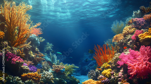 © Michal, Obraz premium Realistic Underwater Background with Coral Reef