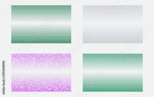 Obraz premium Realistic vector multicolour halftones set on geometric background with dotted patterns, dotted textures, and circular dotted effects. Trendy abstract graphic halftone art and creative designs.