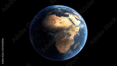 Fototapeta premium Realistic view of earth from space highlighting african continent with blue...