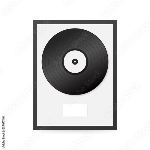 © DG-Studio, Obraz premium Realistic vinyl in frame on wall. Collection disc, template design element. Vector illustration.