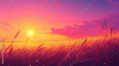 © CreativeCreations, Fototapeta premium Realistic wallpaper for the festival of baisakhi with a field of golden wheat at sunset