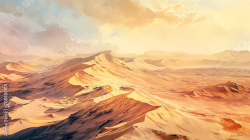 Fototapeta premium Realistic Watercolor Egyptian Desert Landscape