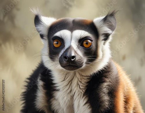 Fototapeta premium Realistic watercolor painting of lemur with lifelike details, small primate,...