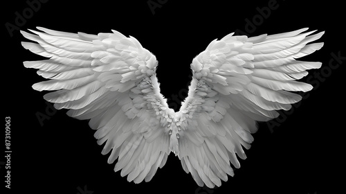 © Jan, Obraz premium Realistic white angel wings isolated on solid black background. isolated on a solid black background. Illustrations