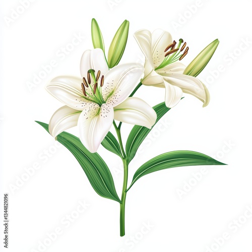 © JK_kyoto, Fototapeta premium Realistic White Lily Botanical Beauty Concept for Nature and Flower Illustrations