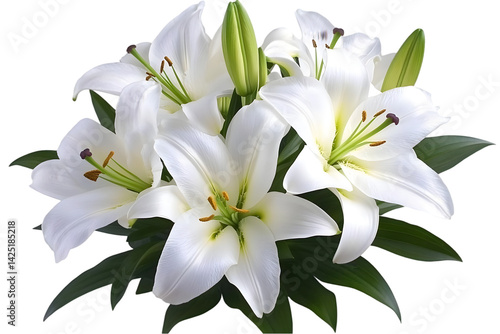 Fototapeta premium Realistic White Lily Flowers Isolated on Transparent Background Photo