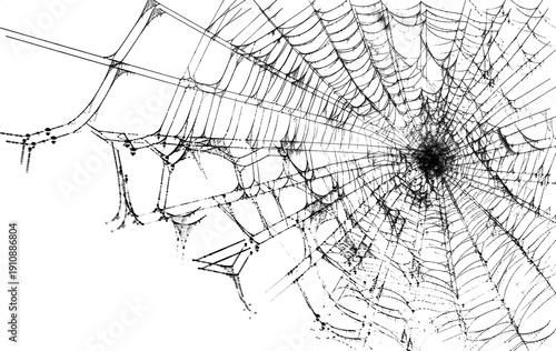 © HearRa CG, Fototapeta premium Realistic White Spider Web Overlay on Dark Background