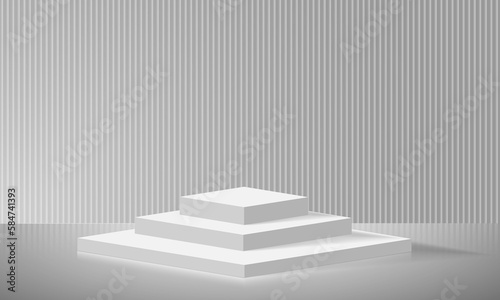 © patthana, Obraz premium Realistic white square podium steps on grey vector