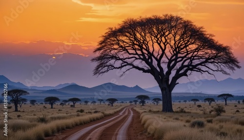 Obraz premium realistics remarkable landscape of Kenyan savanna at twilight, with its...