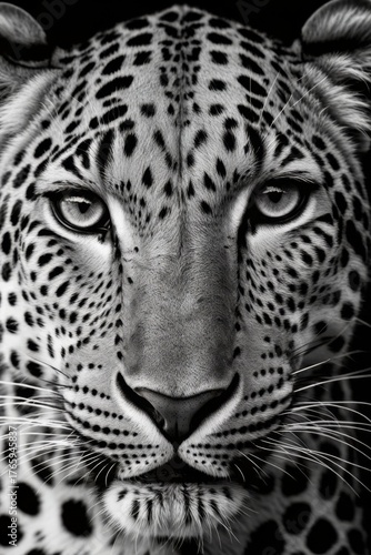 Fototapeta premium Realistische Schwarz-Weiß-Zeichnung eines Leoparden mit intensiven Augen