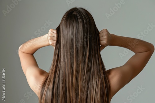 Naklejka premium Rear shot of woman showing long black hair