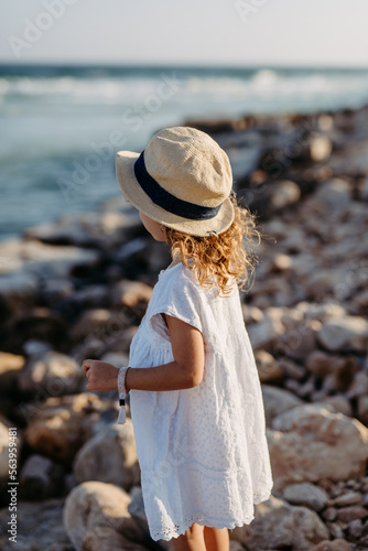 Obraz premium Rear view of little girl looking at the sea.