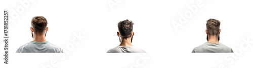 Obraz premium Rear View of Man's Head and Shoulders Against Black Background