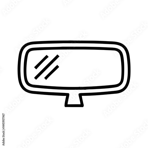 Naklejka premium Rearview mirror icon in black outline style, interior car mirror symbol for driving safety, automotive interface or educational traffic materials