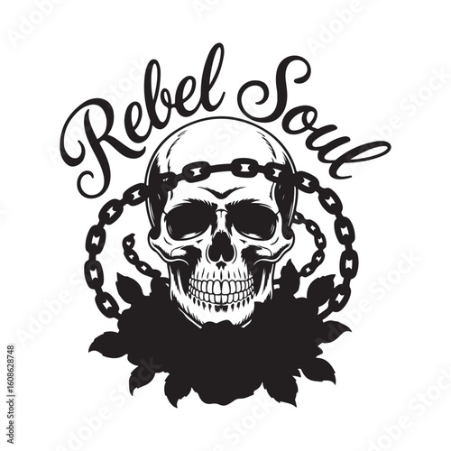 Obraz premium Rebel Soul Skull with Chain and Roses Illustration
