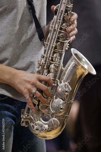 © furtseff, Obraz premium Ręce dziewczyna gra na saksofonie