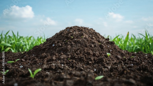 © AkuAku, Fototapeta premium Recently Excavated Soil Mound for Horticulture and Yard Decoration, Suitable for Diverse Planting Activities