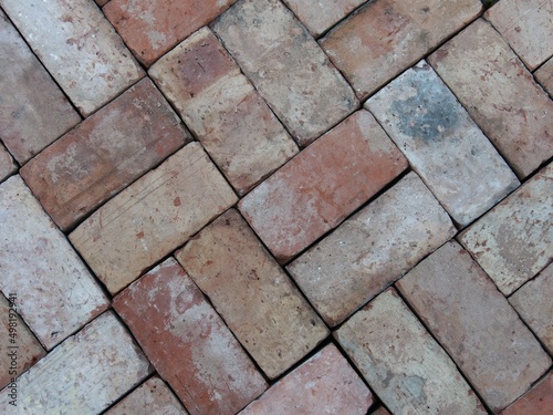 Naklejka premium Reclaimed brick path in diagonal checker pattern