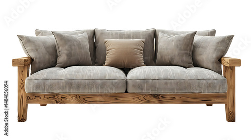 © Prosanjit12, Obraz premium Reclaimed wood sofa with beige cushions isolated on transparent background