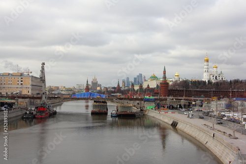 Obraz premium Reconstruction of the Big Moskvoretsky bridge on the Moscow River