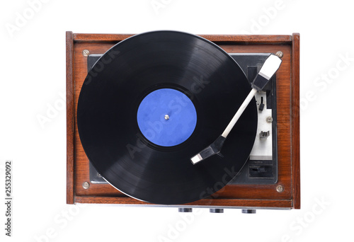 © Pixel-Shot, Obraz premium Record player with vinyl disc on white background