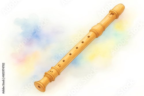 Naklejka premium recorder, instrument, flute, watercolor, painting, drawing, art, instrument, flautist, recorder player, woodwind