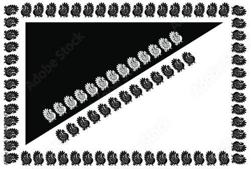 © Bhuvanesh S, Obraz premium Rectangle border frame design concept of Peacock with feather pattern isolated on black and white background